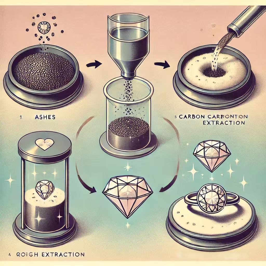 The first step is to extract carbon from the ashes. Specialised techniques and equipment are used to isolate and purify the carbon from theother components in the ashes.