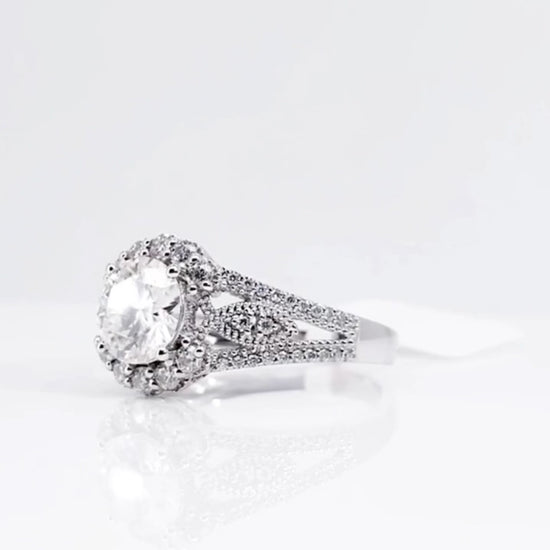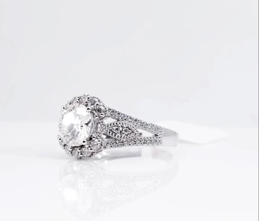 Surrounding the center diamond is a halo of smaller diamonds, meticulously set to create a stunning visual effect. This halo not only amplifies the ring’s sparkle but also adds a touch of sophistication, making the central diamond appear even larger and more prominent.