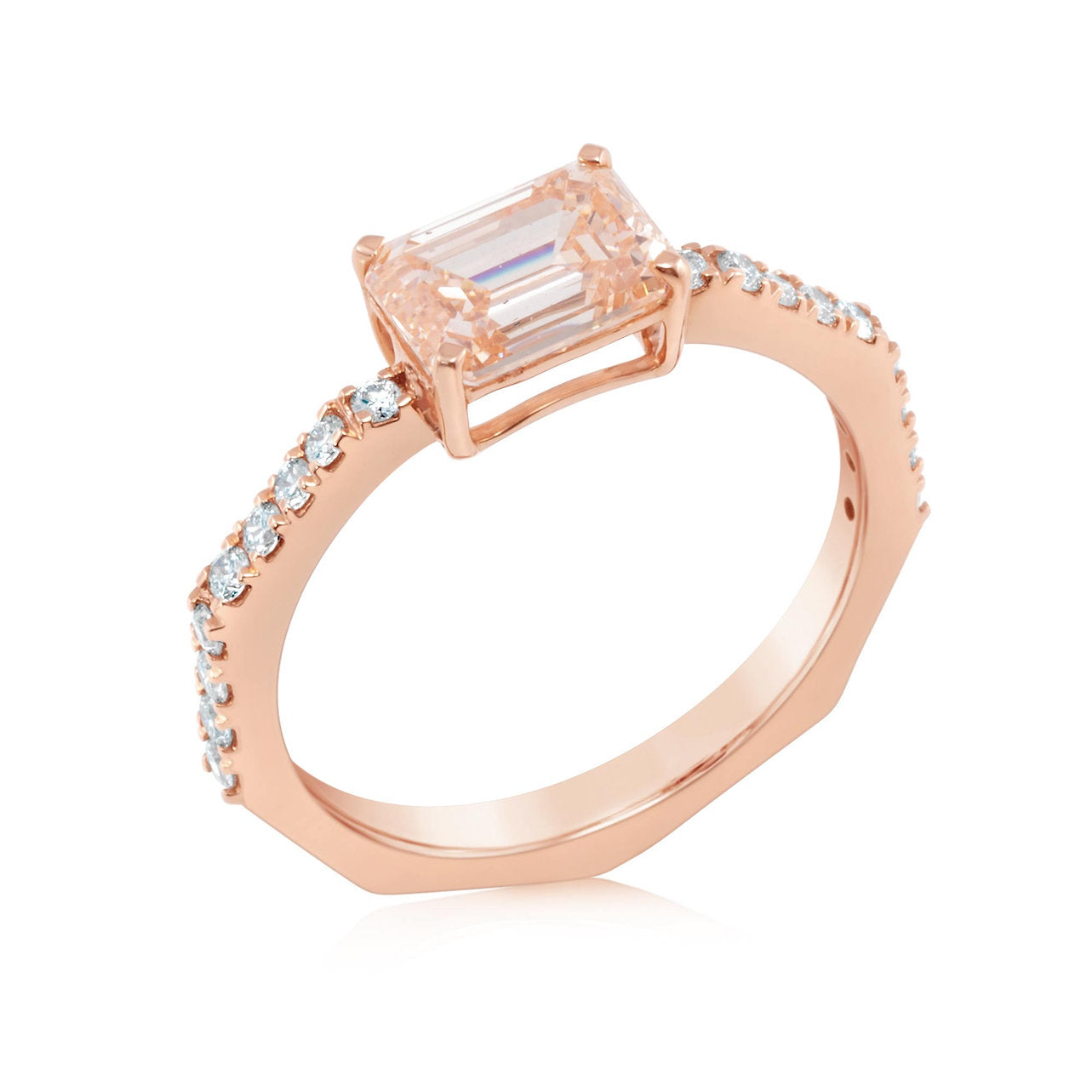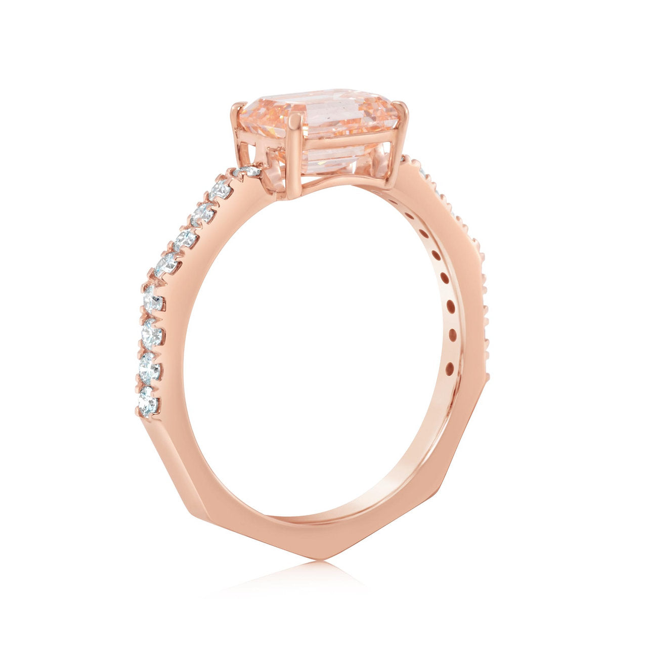 Experience the charm of a unique and stylish rectangular fancy pink cultured diamond ring featuring 1.52 carats of exquisite rectangular pink cultured diamonds. This classic piece features an elegant 9-sided 18K rose gold band, perfectly interpreting style and sophistication. Elevate your style today with this stunning fashion treasure.